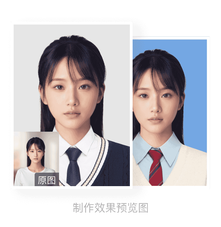 上传一个带有人像的照片在线生成一个可在网络或者打印的符合规范的一寸或者两寸照片,快速制作您所学的证件照